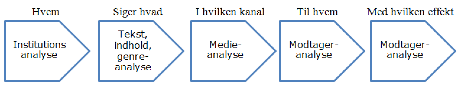 Laswell lægger vægten på de 5 hv-spørgsmål man skal huske at stille i en kommunikationsanalyse: